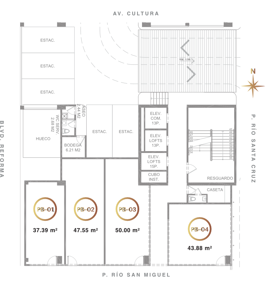 Contamos con 9 espacios desde 37 m² distribuidos en dos plantas. Promoviendo una atmósfera de vitalidad y armonía, estos lugares están reservados para productos y servicios enfocados a la salud y el bienestar.